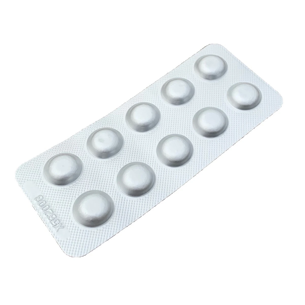 Tablets blistered in an aluminum push-through blister (10 tablets per blister). In a cardboard sales-box